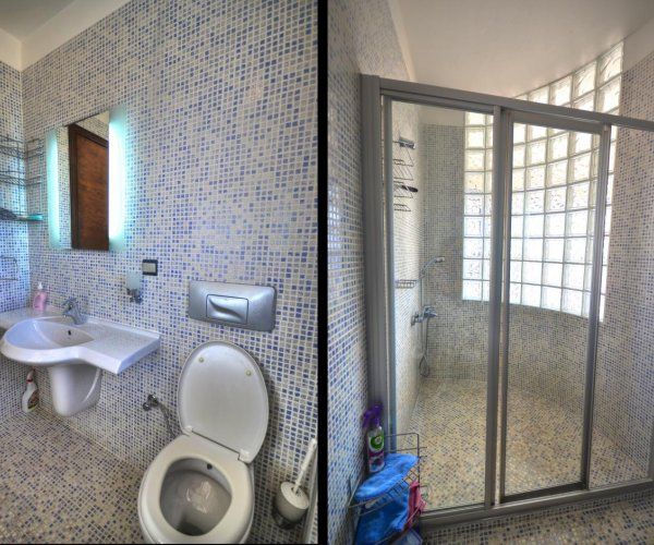 lower level wc. Theres also a shower by the pool. The bedrooms